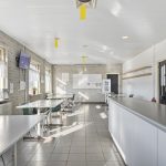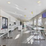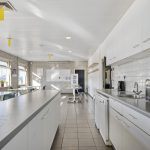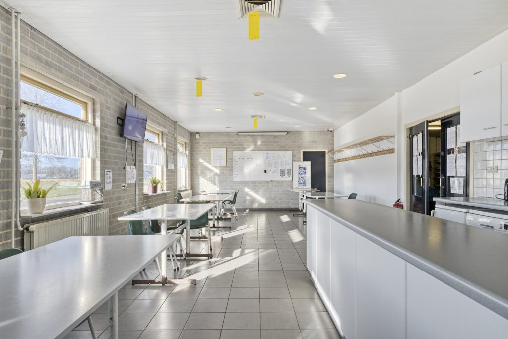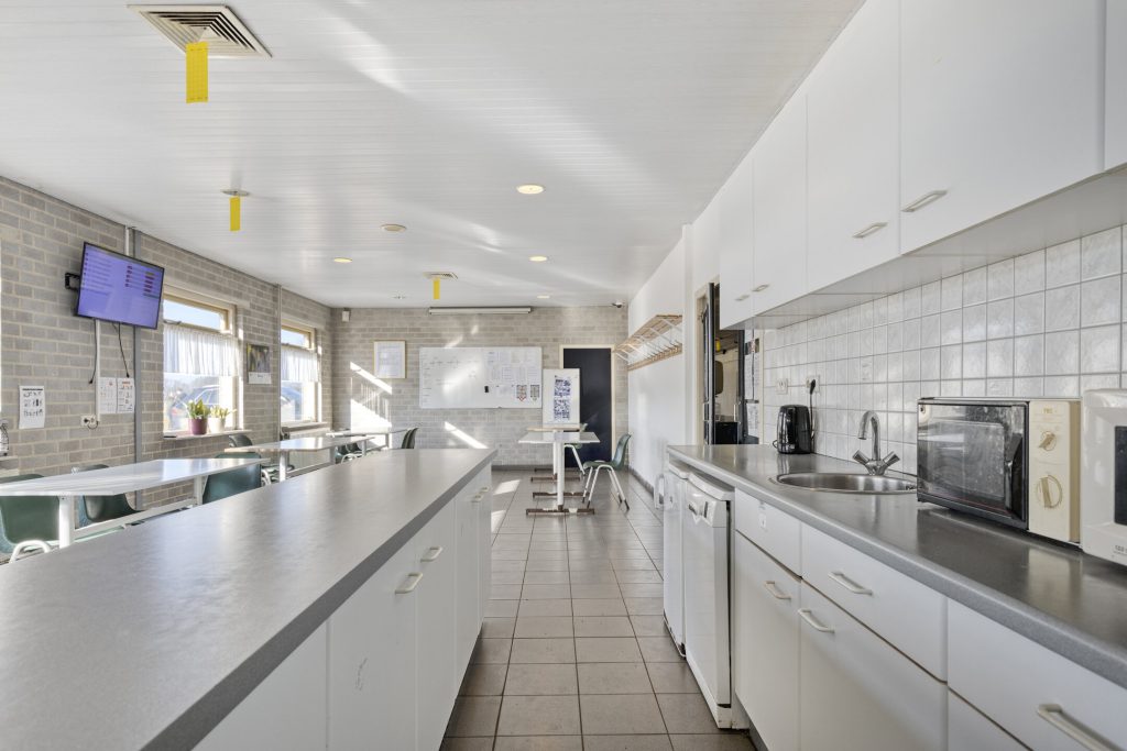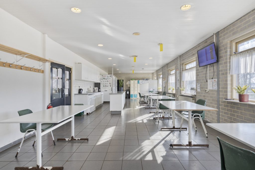 2 Kantines: Voorzien van tegelvloer, schrootjesplafond met inbouwspots en keukenblok
