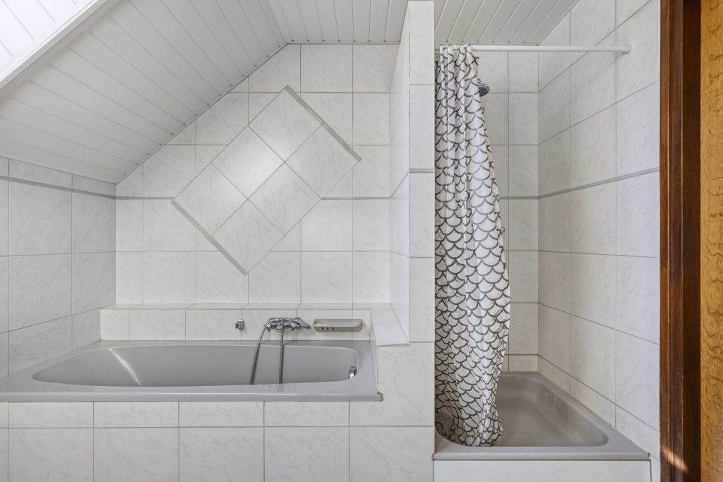 Op de verdieping vindt u een overloop, 5 afsluitbare slaapkamers, waarvan 2 slaapkamers voorzien van airco, en een volledig betegelde badkamer met douche, bad, wastafel, toilet, radiator, dakraam en kastruimte.