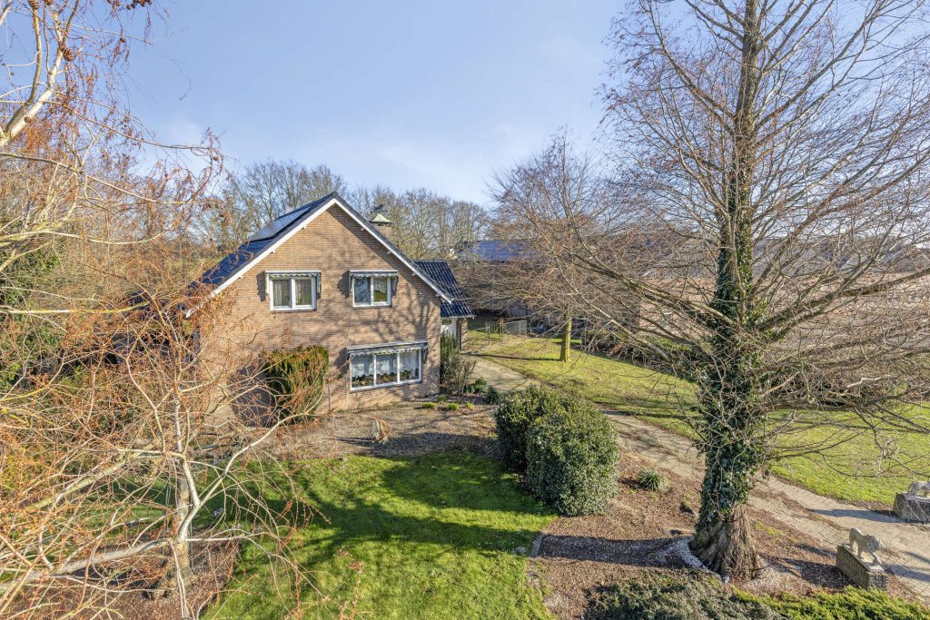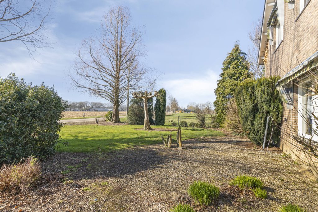 De vrijstaande woning met fraai ingerichte tuin is gelegen op een ruim kavel van 3.406 m2 en heeft een heerlijk vrij uitzicht over de landerijen aan voor- en achterzijde.