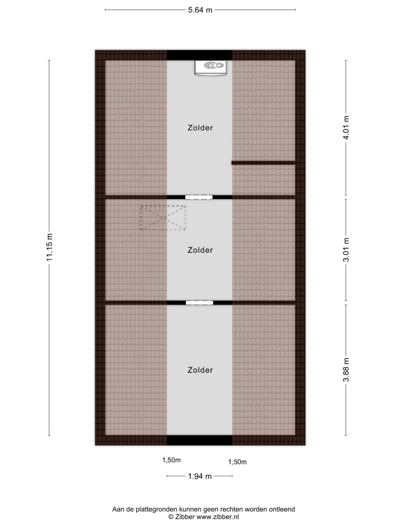 Centrale gang: Vanuit de centrale gang is de zolder bereikbaar met een losse trap. Hier bevinden zich diverse technische installaties.