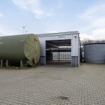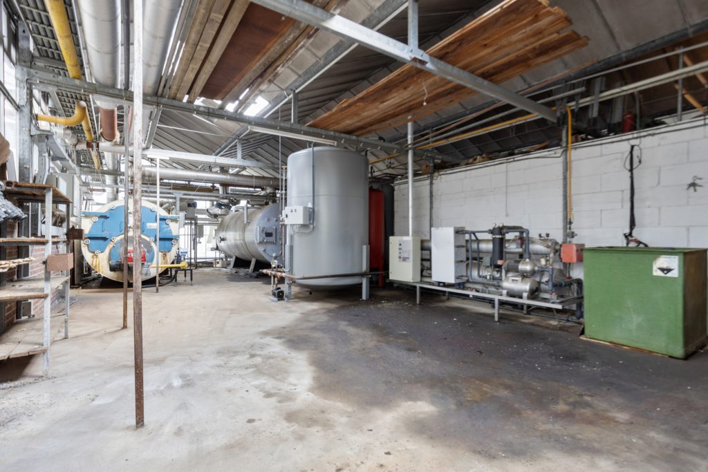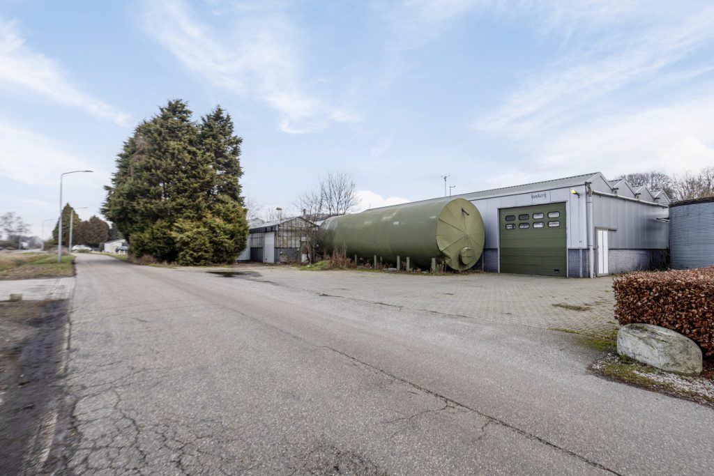 Aan de linker voorzijde van het bedrijf en aansluitend aan het ketelhuis zijn 2 kappen gereserveerd als loods/opslagruimte. Deze ruimte heeft een vloeroppervlakte van 7,8 x 12 m. Een sectionaal deur (merk Crawford) deur van 3 x 2,90 m biedt toegang tot het buitenerf.