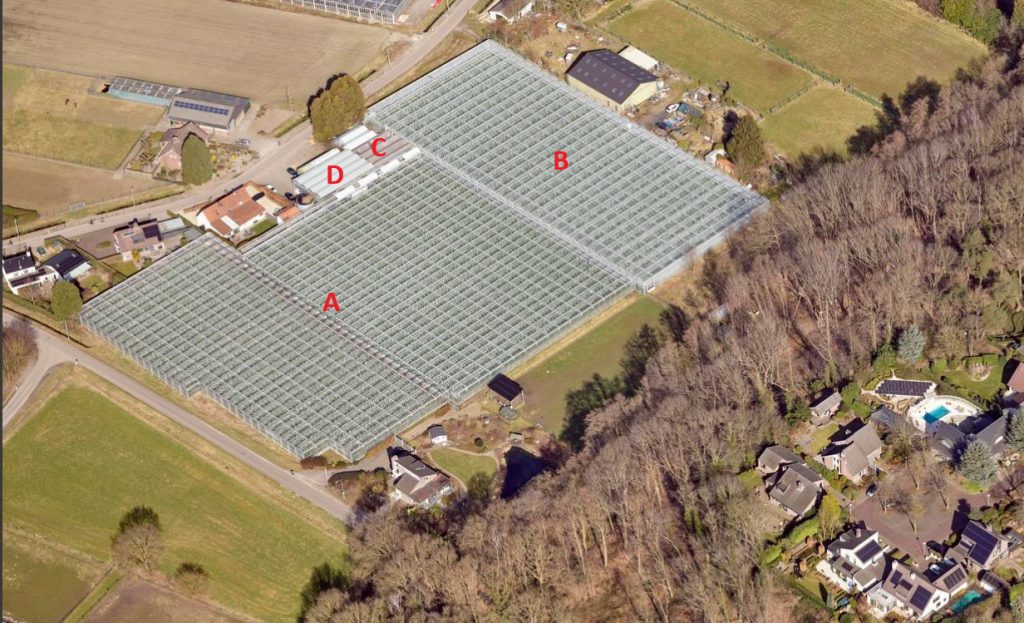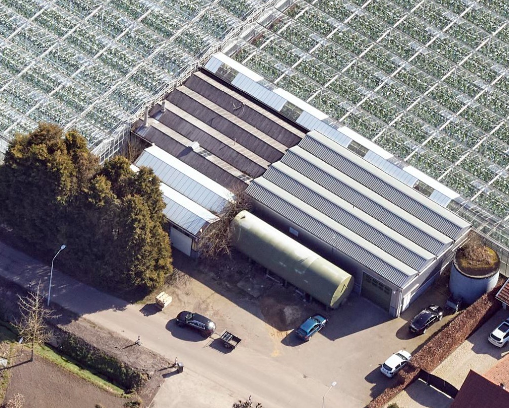 In de bedrijfsloods bevinden zich een verwerkingsruimte, het ketelhuis, een inpandige koelcel, een substraatunit, een kantoor met klimaatcomputer, een pantry en een toilet. Vanuit de bedrijfsloods zijn beide afdelingen bereikbaar via een corridor. Aan de voorzijde van de locatie zijn parkeerplaatsen voor werknemers en bezoekers.