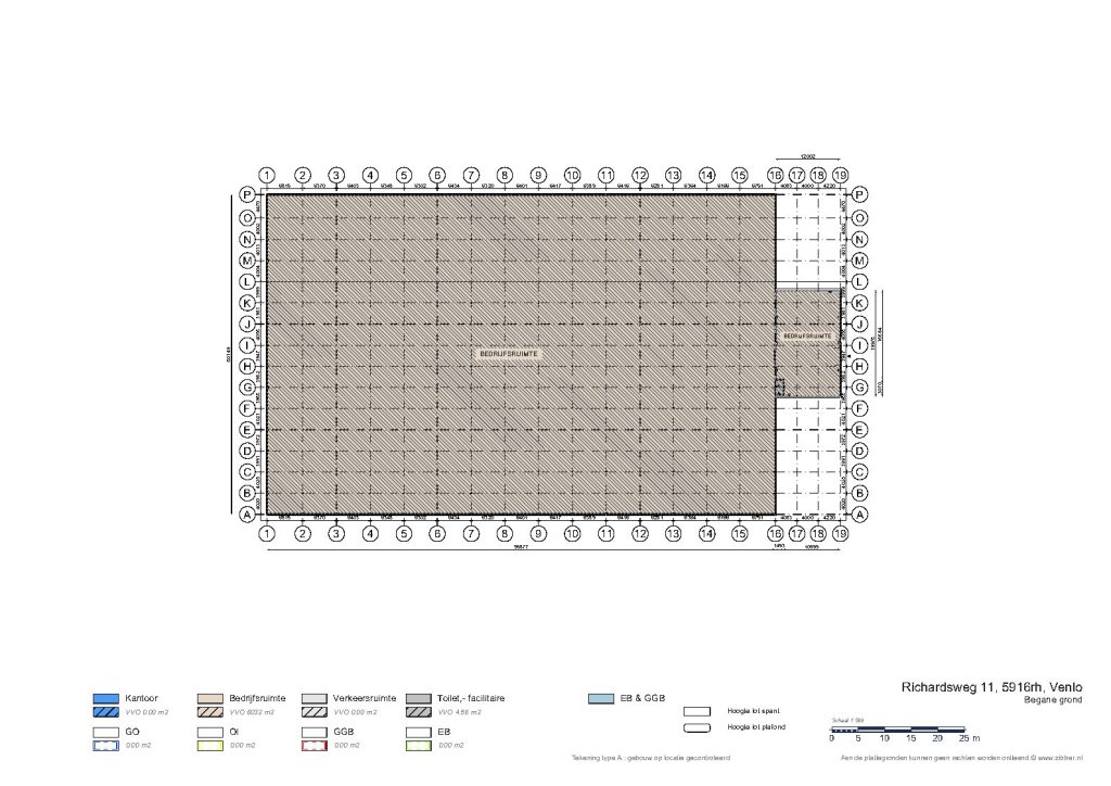 De loods heeft een oppervlakte van circa 240 m² (ca. 20m x 12m) en is toegankelijk middels een handmatig bedienbare sectionaaldeur (ca. 3m x 3,5m) en een loopdeur. De loods heeft een goothoogte van ca. 4m en een nokhoogte van ca. 6m.
