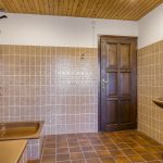 Op de begane grond bevinden zich een ruime slaapkamer en badkamer; ideaal voor wie gelijkvloers wil wonen. De slaapkamer heeft openslaande deuren naar het terras en is licht en ruim. De betegelde badkamer is nog in originele staat en uitgerust met twee wastafels, een ligbad en een douche.