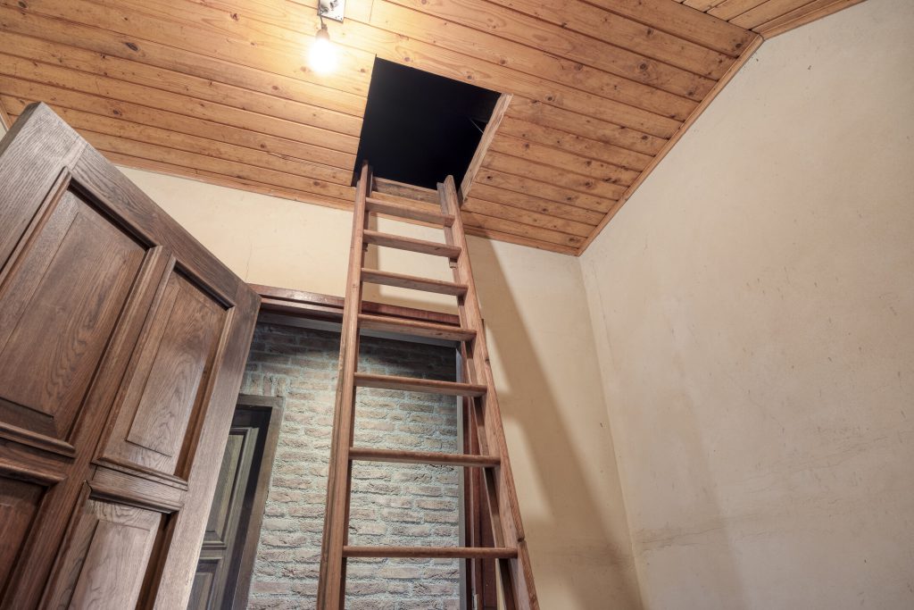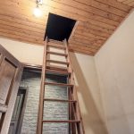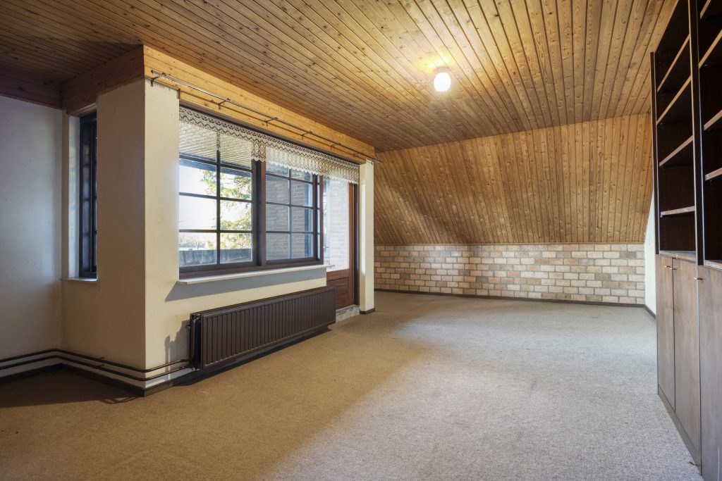 – plafond afgetimmerd met houten platen