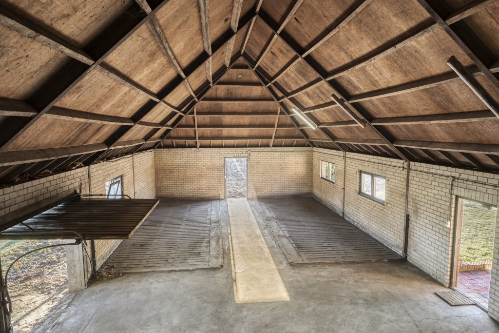 – toegang via een houten kanteldeur en twee loopdeuren.