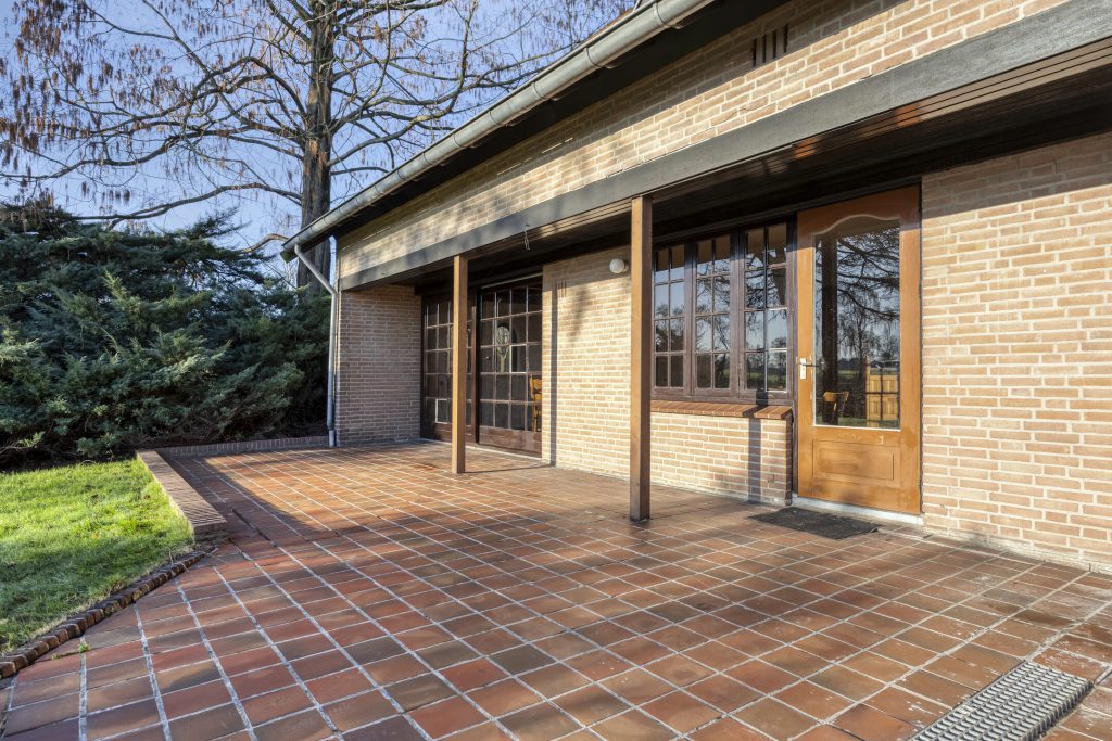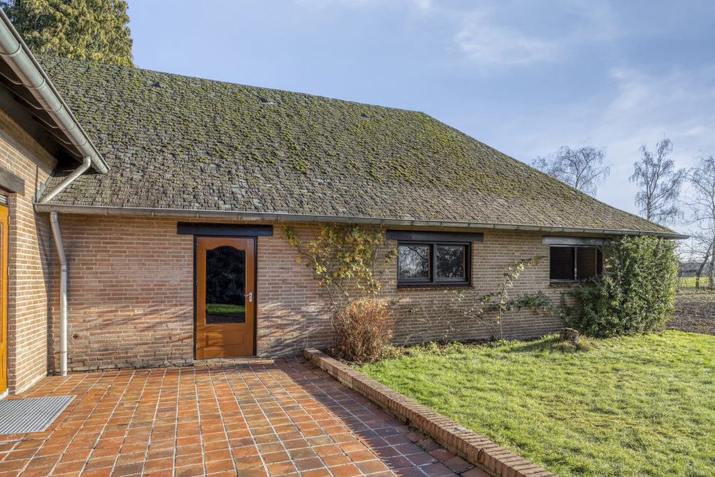 Door de L-vorm van de woning ontstaat een beschutte, privacyrijke buitenruimte met een mooi terras op het zuiden. Vanuit het terras geniet je van een ruim uitzicht op het mooie landelijke gebied.
